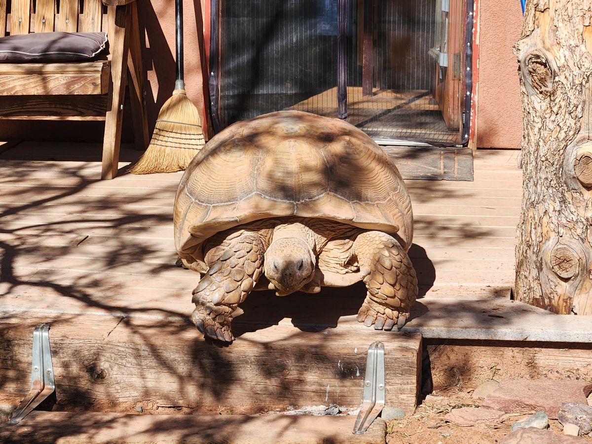 Kodae the tortoise on the course.
